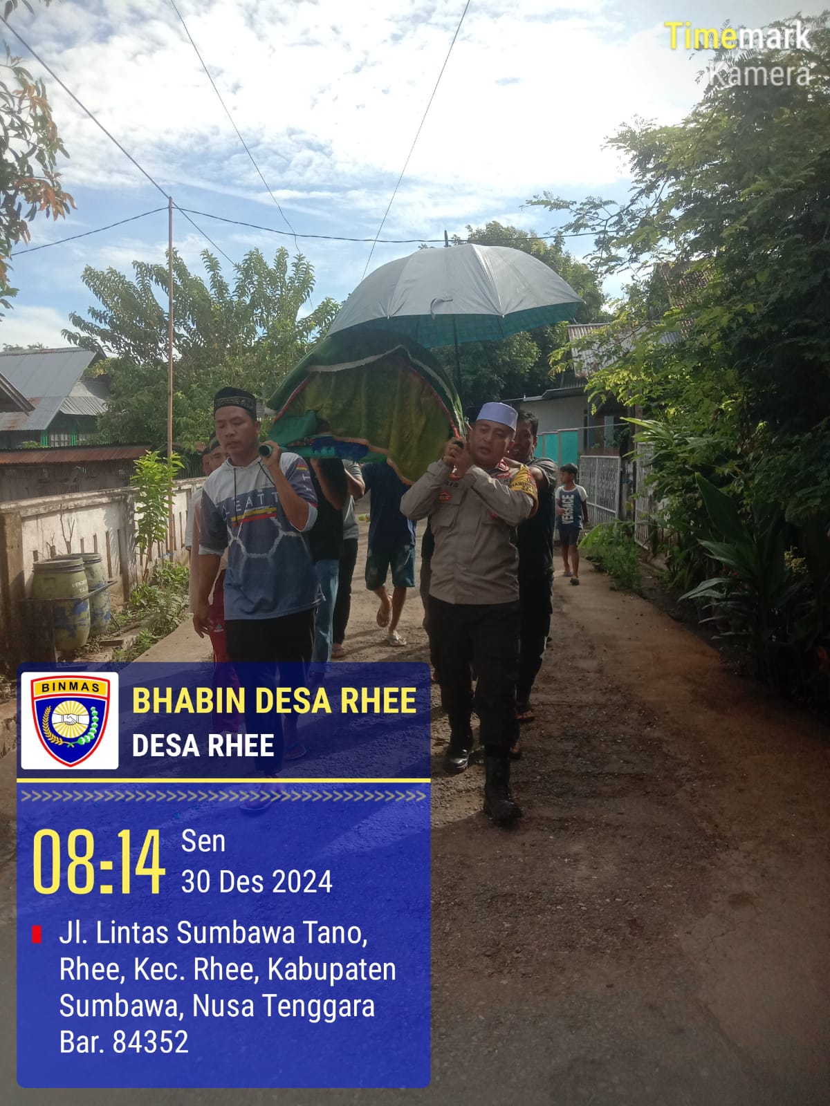Sumbawa Besar-NTB, Bhabinkamtibmas Desa Rhee, AIPDA Alfian Haris, personel Polsek Rhee, menunjukkan kepeduliannya kepada masyarakat dengan melaksanakan kegiatan sosial yang penuh empati. AIPDA Alfian Haris turut serta dalam prosesi pemakaman salah satu warga binaannya yang baru saja meninggal dunia, Senin (30/12/24) pagi.